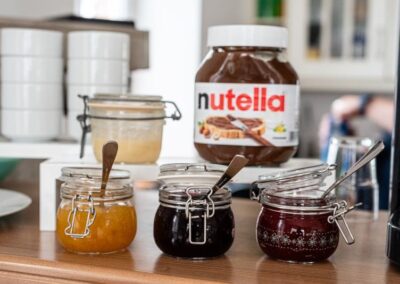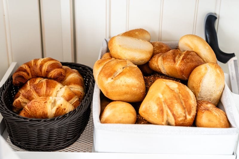 Zu einem reichhaltigen Frühstück gehören natürlich Brötchen. Als Belag bieten wir verschiedene Sorten Aufschnitt, Käse, Marmeladen, Honig oder Schoko-Nuss-Aufstrich. Abgerundet wird unser Angebot von Frühstückseiern, verschiedenen Sorten Jogurt und Müsli/Cornflakes.